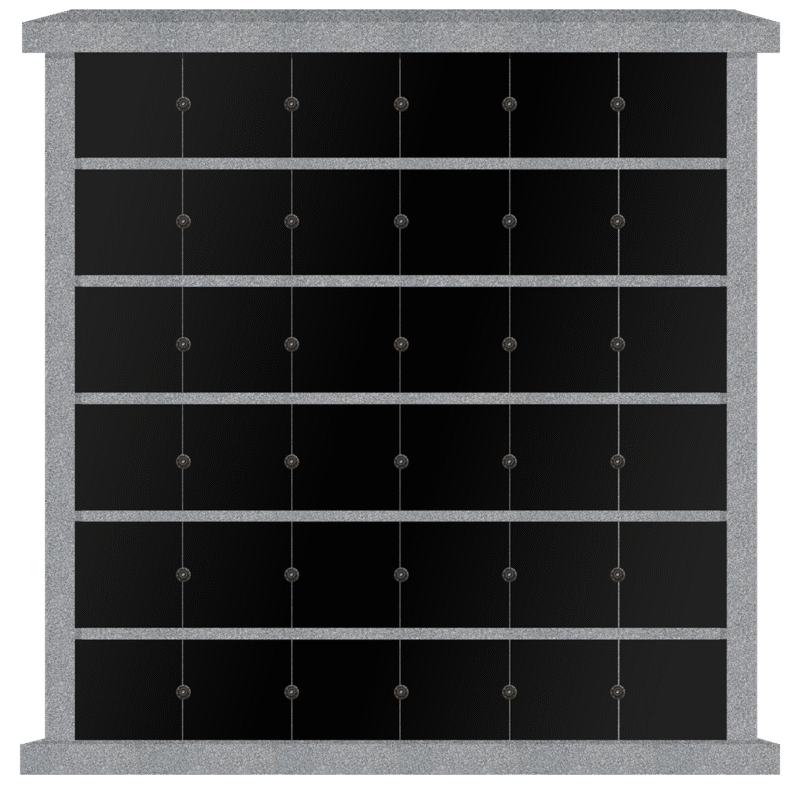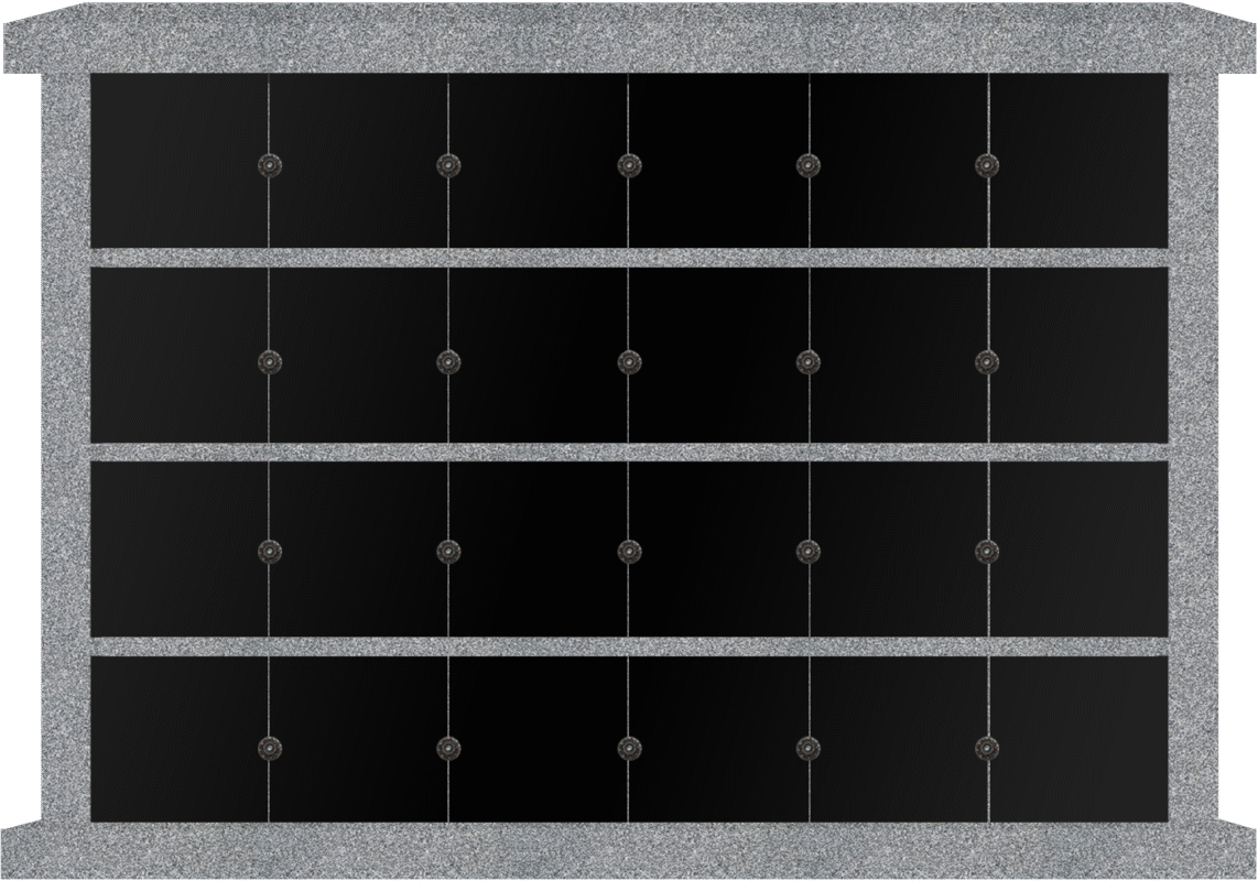 * 16 Niche Columbarium 4-11×1-5.5×4-11 China Grey/Jet Black China Grey Walls/Jet Black Doors; 1 Sided, 4×4 Niches Includes Rosettes & Key CFS-L-064