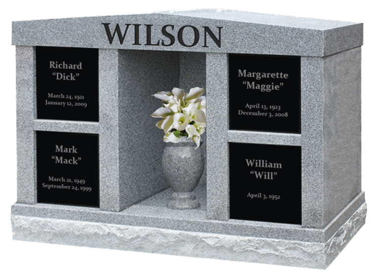 * 12 Niche Horizontal Columbarium 4-6×1-6×3-7 China Grey Walls/Jet Black Doors; 1 Sided, 4×3 Niches Includes Rosettes & Keys CFS-L-SY-406