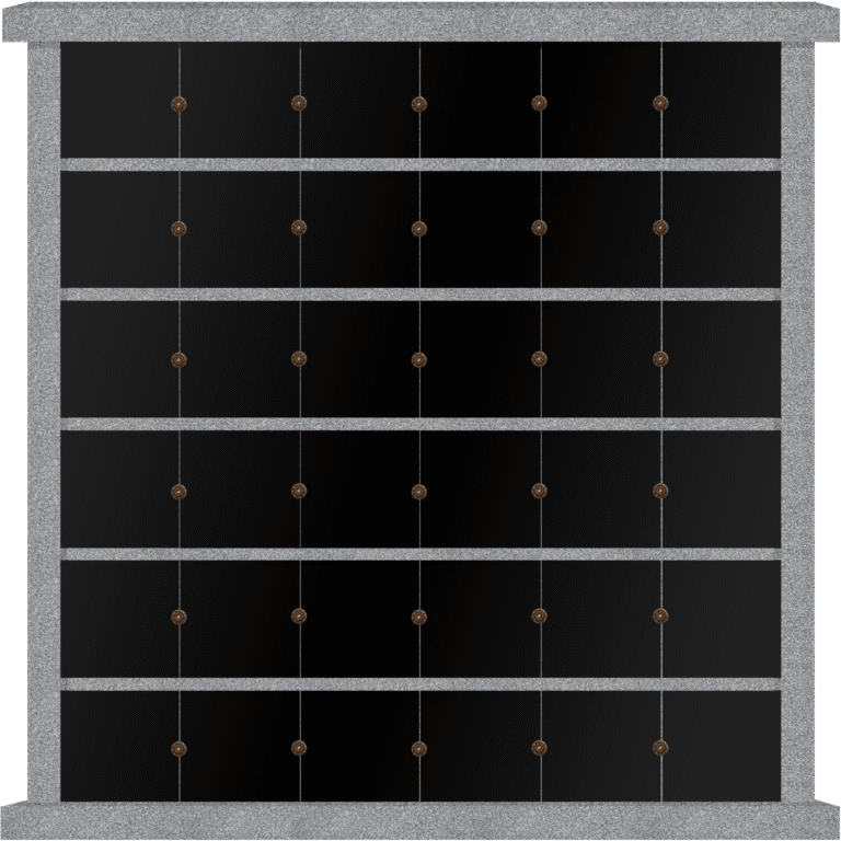 * 36 Niche Columbarium 7-1×1-5.5×7-1 China Grey/Jet Black China Grey Walls/Jet Black Doors; Single Sided, 6×6 Niches CFS-L-095-inch; Includes Rosettes, Keys & 4 Extra Niche Door