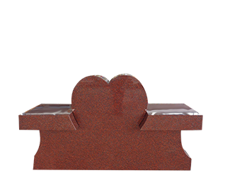 Cremation Heart Pedestal Bench 4-0x0-8×2-4 AP India Red (2) Seats 1-3.875×1-2×0-4; (2) 6″x10″ Core Holes in Pedestal
