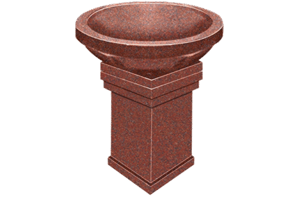 Bird Bath Single 1-8×1-8×2-9 with base India Red bath, pedestal AP / 1-8×1-8×0-4 pft, brp base pedestal has one 6×10 core hole, NO CARVED BIRD INCLUDED