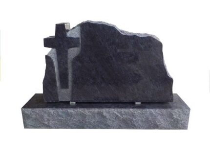 Design 26047 As Shown 4-0x0-8×2-4 Polish 2/BRP DarkCloudGrey 1/2″ recessed stippled area around cross as shown front only back -flat, polished