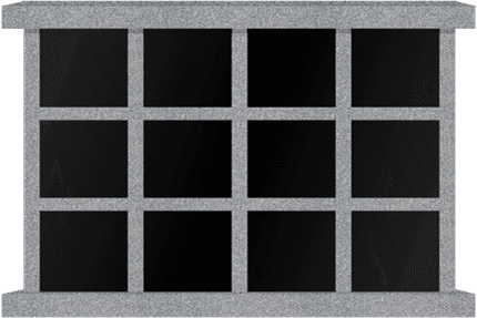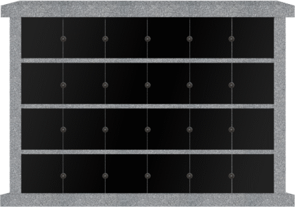 24 Niche Horizontal 1-sided Columbarium6-7×1-6×4-11 China Grey Walls/Jet Black Doors; 6×4 Niches Includes Rosettes, Key & 2 Extra Niche Doors