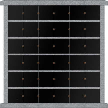 * 36 Niche Columbarium 7-1×1-5.5×7-1 China Grey/Jet Black China Grey Walls/Jet Black Doors; Single Sided, 6×6 Niches CFS-L-095-inch; Includes Rosettes,